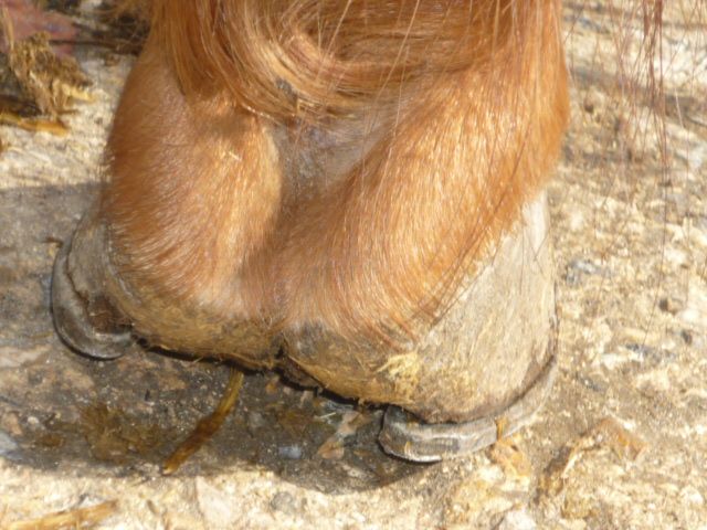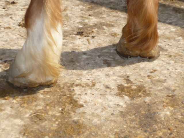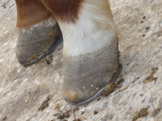 ben les stries la elles ont l'air récentes, peut être aussi un changement d'alimentation? d'après ce que tu me dis la fourbure est plus ancienne que les stries ![]() après pas besoin de mettre quoi que ce soit sur le pied, ça ne fera pas partir les stries. tu peux donner quelques compléments minéraux vitaminés (une pierre a lécher) pour compenser si c'est dû a des carences, la nouvelle corne qui va pousser sera de meilleure qualité avec un petit complément. la biotine je te le conseille pas car je suis pas convaincue de l'efficacité. mais je pense qu'un bon maréchal te dira si tu dois mettre des produits, moi perso j'en mets sur la couronne pour avoir une pousse de corne plus rapide et de meilleure qualité, mais comme là les pieds sont très longs je n'en mettrais pas. |