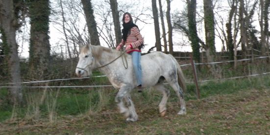 | Dire merci | Mon Titi dans 1,45 / 1,50 (grand max !!! ) et moi 1,70 m ... (lors de son débourrage ... d'où mon air pas du tout crispé )![]() et là sur mon doudou qui lui, fait 1,53m ... ![]() |