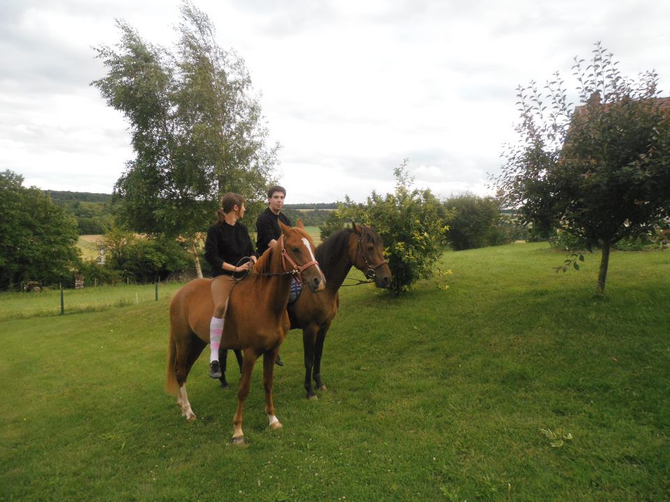 | Dire merci | et beh vega quels progres! elle a l'air de bien bosser! Pour la mienne, après le programme un peu chargé a Mont le soie (une séance longe + monte, deux balades avec des parties montées plus une autre séance longe+monte) la miss passe du bon temps! je l'ai juste monté une fois la semaine dernière et elle a été magique! pas, trot, arrets toute seule sans longe, un vrai régal! j'vous mets qd meme des photos des vacs, car ma soeur fait des magnifiques clichés ![]() ![]() ![]() bien ma puce! ![]() ![]() ![]() ![]() ![]() ![]() voila! plus de photos sur mon post pour celles qui ont envie! |