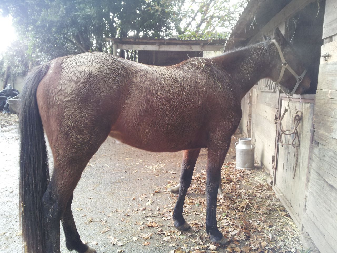 | Dire merci | le mien est effectivement une grande perche! j'avais mal pris la mesure a la toise la dernière fois,il est non pas a 1m75 mais 1,73 au garrot ,ce qui ne change globalement rien et en pleine poussée de croissance du cul selon l'ostéo,ce qui explique sa difficulté de remplumage.c'est pas le boulot ou le froid qui lui tirent dessus,mais bien sa croissance...et la blague,estimation de l'ostéo de sa future taille... entre 1,78 et 1,80,tout va bien je voulais un grand cheval,j'aurai un très grand cheval ![]() |