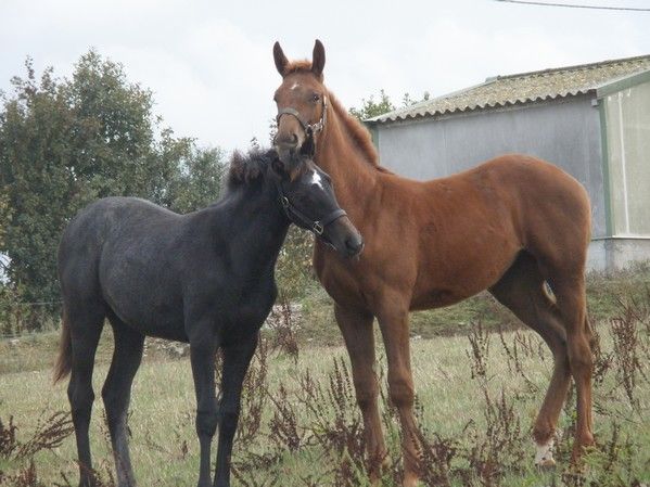 | Dire merci | petite news, Voice va trés trés bien, elle s'éclate! Vip, va être sevrée samedi, j'engoisse car la moindre séparation est une véritable épreuve... en longe à l'attache elle se cabre et se met réellement en danger, dans le box, nous sommes obligés de fermer la porte du haut car elle cherche à sauter la porte. Si elle ne voit plus sa mère, elle se calme mais alors dés qu'elle l'apperçoit..... elle se blesserait trés sérieusement (et nous avec) pour la rejoindre.... La mère est cool mais bon... elle va quand même chercher sa petiote samedi c'est sûr... Je pense que son prochain propriétaire devra être vraiment ferme avec elle tout en étant trés doux. Je pense qu'elle serra mieux entre les mains d'un homme que d'une femme... c'est bien la première fois que ma jument me fait une pouliche comme ça... Pas facile à gérer surtout quand les chevaux sont à 1h de chez soit. babe |