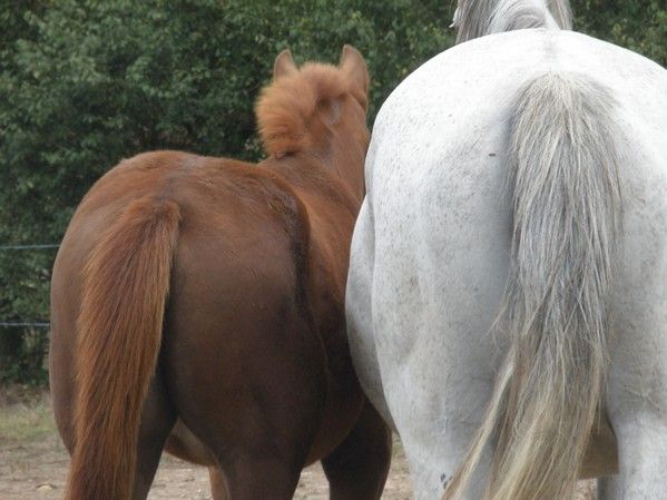 Déconnecté | aikimy: c'est pour cela que je le castre a cet age. Sinon j'aurais attendu mais la... Il essayait de saillir sa mere (pas juste montait dessus) il montait faisait les mouvements, la mordait, faisait les bruits et le tout avec son attiraille! Et la en pature a coté des juments sa va, mais si je passe a coté d'une jument il cranne et si je le laisse niflet pour dire boujour juste 10 sec il sort son attiraille, ronfle, piaffe et fouette de la queue tout en se cabrant legerement! Donc je fais couic-couic et dans 1 mois on en parle plus et il pourra retourner avec sa mere afin de finir education |