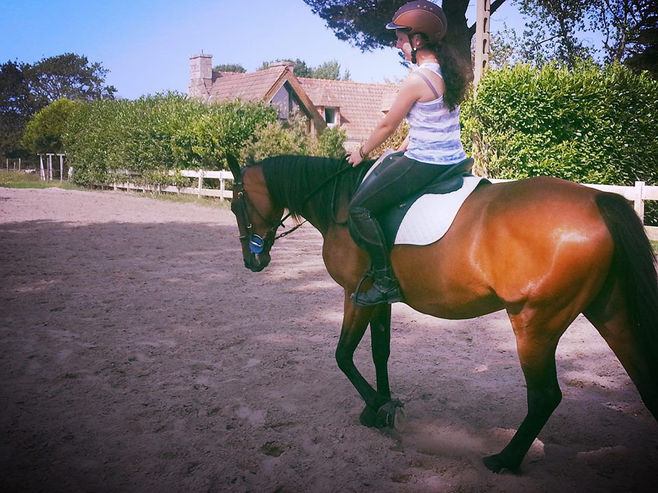 | Dire merci | Oui, on a toujours un petit divertissement lors de nos aventures... Un pont en bois d'1m50 de large à passer avec nous qui sautons dessus pour se convaincre que ça tiendra sous le poids des juments, une attaque de chiens, des génisses débiles (pléonasme), des côtes où on fait du surplace si on ne prend pas d'élan (et qu'on ne monte même pas à pied car on n'en est pas capables...) Sans parler de nos "sorties à thème" (ex : animaux : chèvres, ânes, chevaux, moutons, chiens, vaches sur la même boucle) C'est divertissant |
