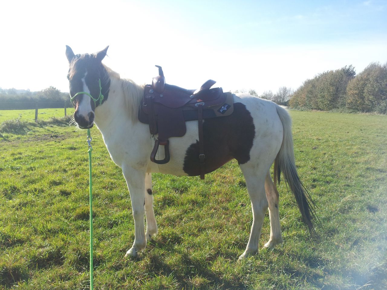 | Dire merci | Aujourd'hui premier sanglage pour Vedette, qui ne bouge pas une oreille quand je serre. Par contre les premiers pas ont secoués mais il suffit d un Non ferme pour l arrêter net Du coup on à tenté quelques foulées de trotdans le calme et ça à été sans péter en l air. ![]() Désolée photo pas terrible ![]() Par contre savez vous où je peux trouver un chariot solide pour transporter ma lourde selle western ainsi que filet tapis et boites de pansage? Si possible démontable pour mettre dans ma clio, et enfin avec des roues pouvant traverser sans soucis les 2pâtures séparant ma jument de la route? Parce que là, j'ai regretté d avoir acheter une selle de 10kilo quand j'ai du la porter de la voiture à ma jument avec en plus le Licol le filet et ma boîte ![]() |