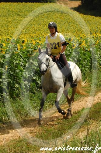 | Dire merci | Randonnée gastronomique faite pour Veiki ! Au lieu des 16km annoncés le matin, on en a fait près de 20... Dans du dénivelé, ça calme ! Super boulot de tracé : ouverture de chemins de particuliers, de prés ou de forêts pour ce jour là, variation décors et sol extra... Mais 3 ou 4 passages dangereux... Repas extra avec magret de canard, ligne d'attache et eau pour les chevaux. Retour je connaissais une partie du chemin, on a coupé 2km car l'autre jument (très osseuse) était claquée, donc un peu plus de 14km. La seule en forme à la fin de ces péripéties, c'était Veiki lol |