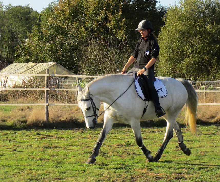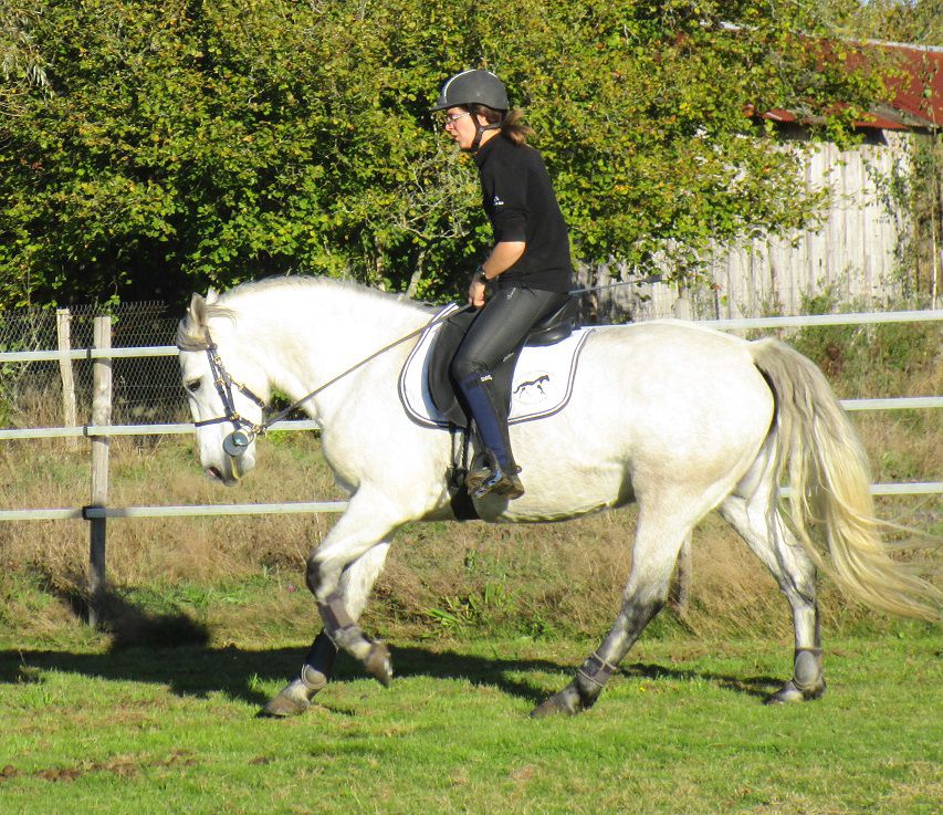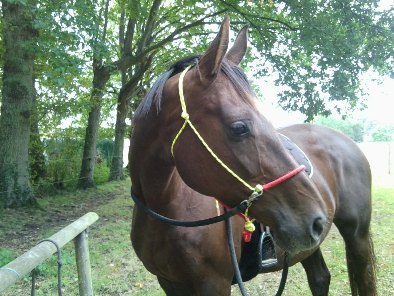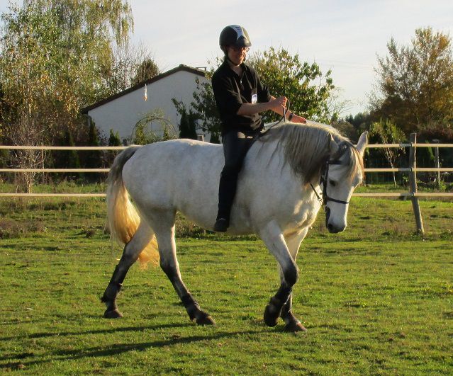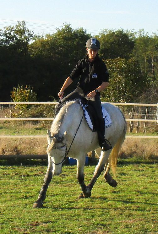 | Dire merci | Vaïna est montée essentiellement par ma fille, qui n'a pas un gros niveau et qui fait promprom mémère avec, je me suis posée dessus mercredi et là outch il y a du boulot, elle est raide comme un baton de justice, il y a du boulot. Bon déjà on va changer de mors, il m'en faut un un peu plus doux, et il va falloir assouplir tout ça. Après ça reste un amour de jument, elle essai quand même et même si je ne suis montée que 15 minutes dessus et bien elle a vite compris 2 ou 3 trucs. Par contre elle ne veut pas partir sur le bon pied à gauche même sur le cercle, depuis sa fracture à gauche j'ai l'impression qu'elle se retient à cette main, elle a vu l'ostéo qui m'a dit que ça allait, donc on va travailler sur l'équilibre pour a remettre bien déjà et l'assouplir après on retravaillera ça. |