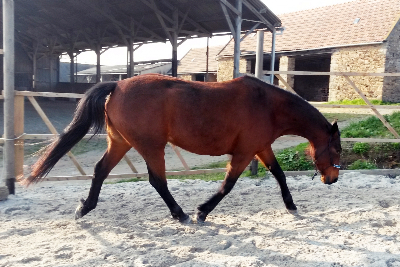 | Dire merci | Nouvelle séance de saut en carrière pour Veiki et moi. Alors une détente... avec une jument tendue. Résultat le galop était désespérant : un coup de cul toutes les 2 foulées, jument fâchée... ![]() Donc réussir à faire 3 foulées correctes et repasser au trot avant la ruade, puis re départ (ça va elle ne saute plus dans tous les sens à chaque départ...). Ca faisait bien 3 séances qu'elle n'avait plus levé les fesses j'étais soulagée... ![]() Du coup, j'aborde les barres avec appréhension (vues les réceptions en coups de culs qu'elle peut me faire...).... Mais réception sans soucis. Abords toujours en anguille mais franche et se dépatouille des ennuis dans lesquels elle se fourre. Sinon je la mets dans le pied sur un oxer (je sentais vraiment pas la longue) donc gros saut, donc coup de cul... On a enchainé, elle s'est enclenché : redressée, allongement du galop, plus aucune envie de jeter les fesses, que du bonheur. Il ne me restait qu'à diriger. Sauf que... elle a eu peur des palanques... Donc on a fait notre première séparation de corps NON volontaire.... Bon je me suis pris le chandelier et ai atterri sur les pieds OUF. Et très consciencieusement pour ne surtout pas que Veiki apprenne qu'elle peut me jeter (elle peut être déjà assez infecte sans le savoir), je lui ai fait passer les barres en main (genre non mais je suis descendue très vite pour passer à pied ) Comme elle connaît bien le travail à pied (et était plus inquiète par le chandelier qui menaçait de lui tomber sur la tronche) elle n'a pas tilté que j'étais par terre "à l'insu de mon plein gré" On a mis un peu de temps à passer les palanques : en croix au pas, puis au trot, puis... Ben j'ai plus 20ans et je suis beaucoup moins kamikaze ! Donc pause... On a ré-enchainé ensuite et super. Bon nouveau refus sur les palanques (on n'avait pas ressauté remises correctement), volte, abord au trot et ok. Puis on a juste enchainer 3 obstacles à la fon histoire de finir par une belle choses et elle a été top. Bilan : un pouf sur la plat, un bonheur sur les barres et un hématome de gagné ! |