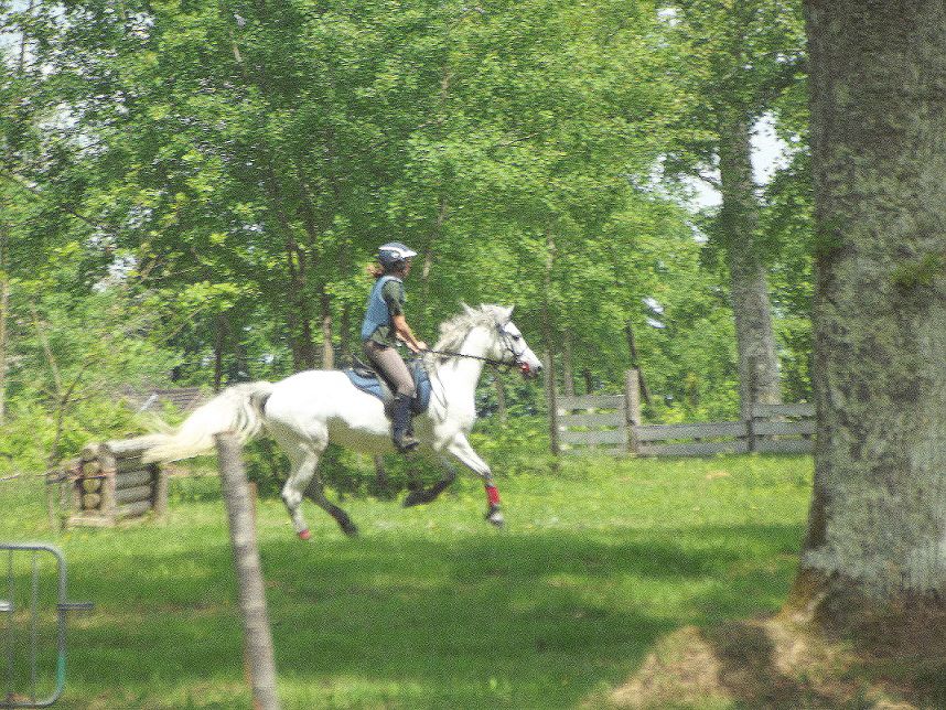 | Dire merci | Oui elle va blanchir jusqu'à être toute blanche ![]() Aujourd'hui, premier cours sur le cross pour nous deux ! Quelques appréhensions de ma part vu sa réaction au troncs sur le PTV.... Et elle a été.... impressionnante ! Enfin je lui permettait de prendre SON rythme de galop, elle s'est éclatée !!! Premier saut en biche "ouh là il y a un tronc sur le chemin mais je vais trop vite pour piler" donc on saute les 4 pieds en même temps. Petit mouvement d'humeur à la réception évidemment....Puis on a assez vite enchainé. Un doute sur un tronc plus gros, mais ça passe, puis elle capte qu'on peut prendre tous les obstacles à la volée et c'est parti pour une séance de pur plaisir !!! Travail sur un enchainement avec beaucoup de parties galopantes, extra. Elle regarde j'encadre, ça passe ! Pas toujours évident de trouver la bonne foulée car moins flexible à ce train là, mais sur du petit (60cm quoi) donc ça passe quand même. Quelques surprises sur le trou à sauter "il n'y a pas de barres ??? oh ! un trou !" qui a bien fait rire mes collègues cavaliers ! peut être des photos plus tard ! |