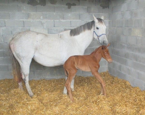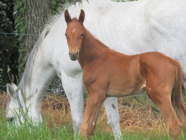 | Dire merci | Moi on m'a dit en général les plus turbulents poulains sont les plus dociles après Ils nous en font voir tout de suite pour devenir des anges au moment du débourage , c'est bon d'y croireEnfin d'empèche que comme toi j'aimerai bien qu'il soit un peu moins turbulent. Mais hier il était debout sur le dos de sa mère et elle lui dit rien! C'est à elle aussi de faire son éducation, c'est pas moi qui vais me taper tout le sale boulot |