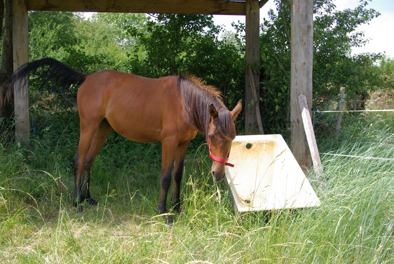 | Dire merci | Je ne l'ai eu qu' a 18 mois et pas manipulé du tout, cloitré dans un box tout l'hiver, il avait le licol en permanence si bien que ca a laissé une trace sur sur chanfrein parce que l'ancien proprio n'arrivait pas a le toucher. J'ai retrouvé sa naisseuse grace au net et elle m' a dit qu'elle n'avait jamais manipulé le poulain parceque la jument ne lui appartenait pas, elle avait juste fait un peu de désensibilisation en main pour qu'il ne soit pas sauvage quand la proprio déciderait de le vendre, il a été monté en van deux places avec son frère d'un an son ainé et sa soeur de deux ans son ainée.puis direction la belgique, la son frère a été vendu et lui est resté parce qu'il avait une couleur particulièrement jolie, mais pas de manip pour cause le proprio c'est cassé la jambe et comme il était un peu sauvage personne ne s'en est occupé. Puis moi je l'achète, bon papier jolie tête et je le ramène avec moi, en van un vrai vieux cheval, il monte et descend comme un retraité. je le manipule, le brosse lui montre que ca fais pas mal, etc....... je le désensibilise au tapis, au surfaix, a la bache,...... puis je le castre et vient le temps de le mettre en prairie pour finir sa croissance, je continue a le manipuler et j'entame le pré débourrage et constat accablant, il est anxieux tout le tps, et comme je ne l'ai pas eu tt poulain ben je n'ai pas pu non plus le remettre a sa place comme il faut parcequ'a 18 mois il avait déja la force de me trainer. |