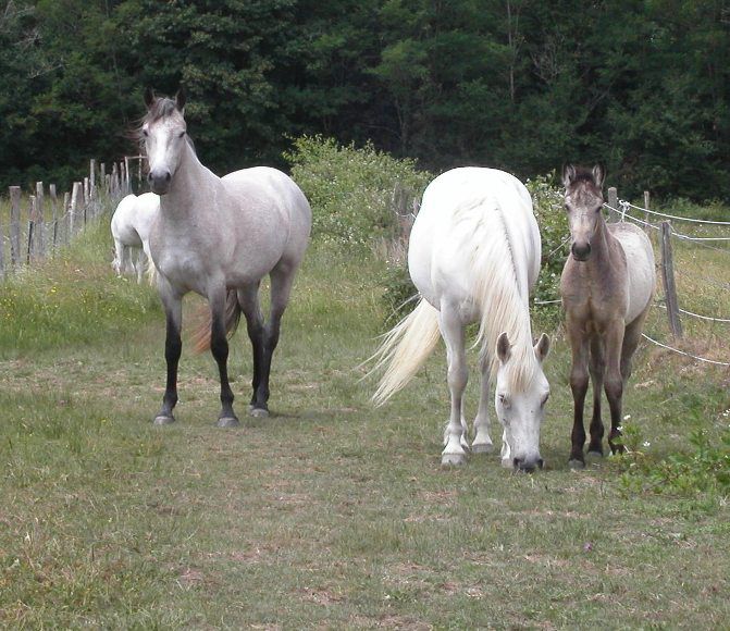 | Dire merci | ça y est !!! Vouchka est arrivée lundi dans son nouveau pré avec ses nouveaux copains (2 vieux hongres), elle est vite tombée amoureuse du dominant mais du coup le halfinger est mis de côté pour le moment, j'espère que le trio se formera rapidement, ça fait mal au coeur de le voir loin des 2 autres dans le pré... une petite vidéo des premières minutes Lien T'es qui toi ? ![]() L'herbe est bonne ! ![]() Un dégradé ! ![]() Un autre pré, vu sur rivière et chateau ! ![]() |