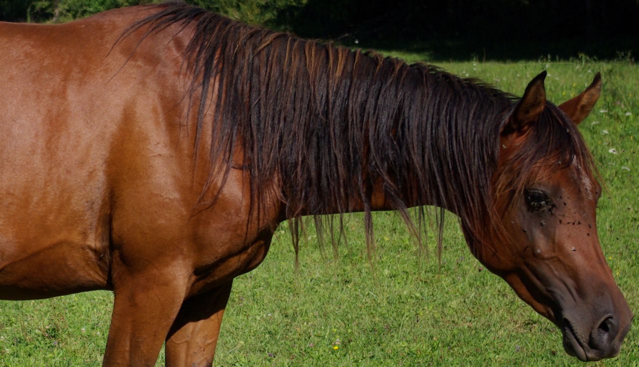 | Dire merci | oh il est pas parfait loin de la, je ne pense pas non plus qu'il y aura des jaloux, il est très basique comme pur sang arabe, mais moi j'aime bien son physique il manque de dish mais bon ça c'est pas grave le plus important pour moi c'est le mental et ça il l'a et j'aime comment il se comporte fasse aux autre chevaux, juments ou lors de nos sorties... il reste très timide avec les gens voir meme méfiant, mais ça hein j'y peux rien c'est son caractère |