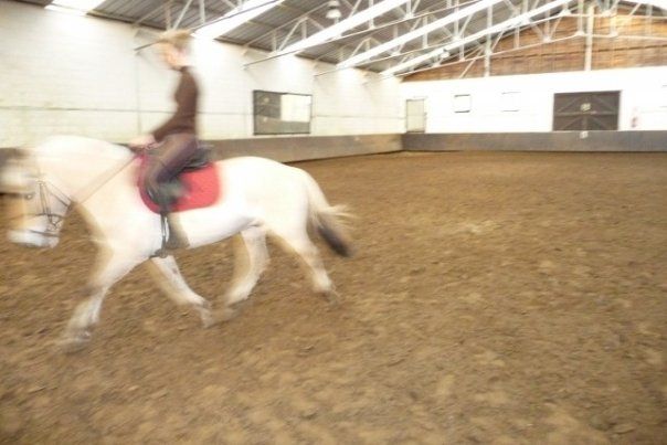 | Dire merci | En même temps ce n'est pas parce que c'est un fjord qu'il doit être gras, travailler à plat et la tronche à l'envers. Il a à mon avis des capacités à exploiter, donc il travaille, et je suis plutôt satifaite de ce qu'il me donne sous la selle, même si en main on a encore du boulot. |