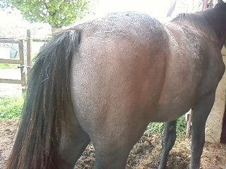 | Dire merci | Ma jument finira blanche ![]() Voici des photos de sa sœur utérine... à 3 ans... ![]() Aujourd'hui à 7 ans ![]() |
