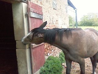 en fait elle est bai brune et devient (tout doucement) grisette enfin je pense car elle a juste des poils gris dans sa robe![]() |
