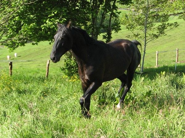 | Dire merci | bon voila deja une bonne annee que je soupsonne mon cheval de tölter, ce qui est possible puisque il existe dans la race (kabardin) des sujets ambleurs. Mais voila, je ne suis pas sure, en plus je n'y connais vraiment rien. Pultot que de continuer a polluer le post des rocky mountain horses ( ) je fais un nouveau post.Donc pour resumer, il me semble vraiment qu'il se met a tölter quand il voit des jujus (entier). Quand je suis dessus en tout cas c'est une sensation a part. Mais je n'arrive pas a lui faire amplifier ce mouvement quand je le lui demande, et du coup je ne suis toujours pas sure qu'en fait ce n'est pas juste un super pas tres tres tres dynamique. Mais aujourd'hui, j'ai eu la bonne surprise de trouver deux jujus (en chaleur en plus) dans le champ d'a cote, ce qui m'a permis (enfin !) de le prendre en photos en action. En regardant mes photos ce soir, deux me paraissent bizarres : La premiere (la pour moi ca me parait vraiment etre du tölt) : ![]() et puis en regardant les photos, j'ai aussi vu celle la (impossible de me souvenir de l'allure sur le moment), je me demande vraiment ce que c'est, il semble avoir 3 pattes en l'air, mais si c'etait du galop les anterieurs ne seraient pas comme ca, si c'etait du trot le posterieur serait pose (ou alors c'est un effet d'optique) : ![]() cette derniere la elle me turlupine ! ![]() Message édité le 05/05/09 à 20:51 Message édité le 05/05/09 à 20:58 |
