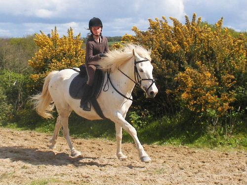 | Dire merci | Il y a (si mes souvenirs sont bons...) 5 critères d'appaloosaïsme: -la robe -les crins (enfin, le pas de...) -les sabots striés -la peau marbrée -le blanc de l'oeil apparent. Il faut au moins 3 des critères pour pouvoir parler d'appaloosa. Ainsi, Tessa a 4 critères: ![]() Oui, je sais, on ne voit pas bien les striures de ses pieds sur cette photo En plus bien sûr du modèle... Un shet "appaloosa", même avec tous les critères, ça ne marche pas ![]() |