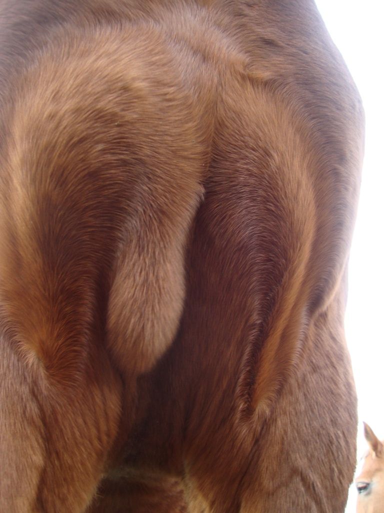 | non non c'était placé exactement a cet endroit, et ça pendouillait aussi. et c'est sûr que c'est un coup, il avait fugué pour saillir la jument du voisin, qui ne s'est pas laissée faire par contre moi y'avait pas de plaie, donc je sais pas si tu peux mettre du synthol sur une plaie... |