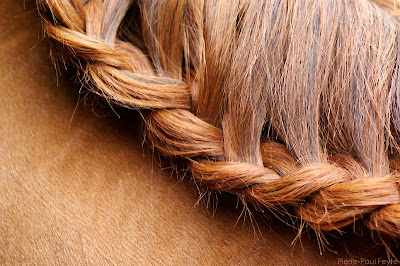 | Dire merci | zaza moi c'est le genre de tresse qui ne tient pas pour un concours ... La seule façon que j'ai trouvé pour que ça tienne pour le paddock et la reprise, c'est de faire cette tresse mais très serrée et surtout à la base des crins sur toute la longueur. Il faut du temps pour arriver à la faire très serrée ... il faut prévoir des "entrainements" de tressage à la maison avant le jour J. |
