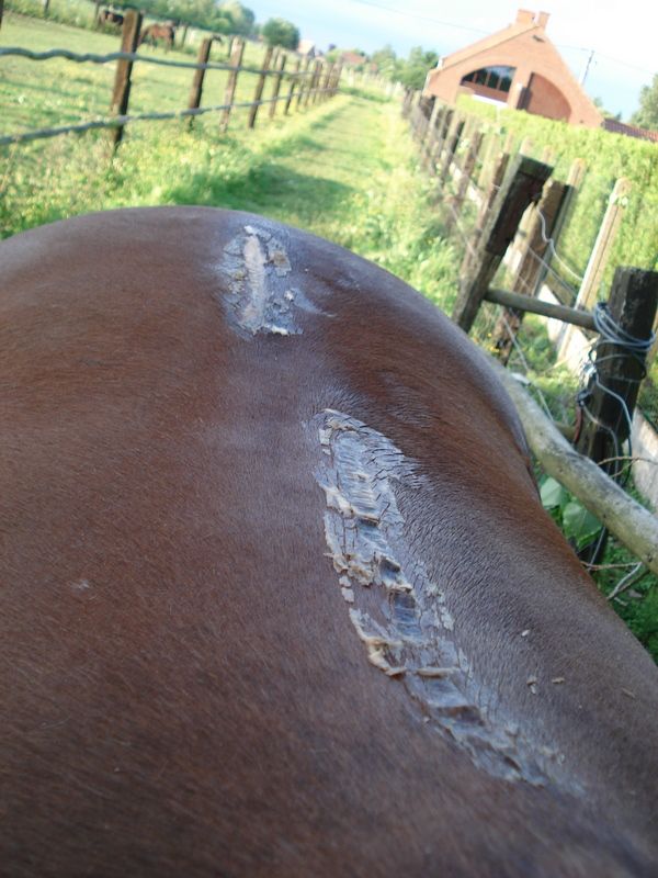 | sans aucun doute, peau arrachée par les fers d'un autre qui lui est monté sur le dos ... j'ai un spécialiste de la chose à la maison |