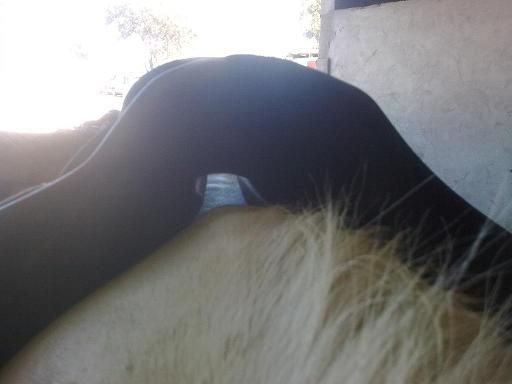 | on voit que la selle est trop étroite quand les matelassures avant ne sont pas entièrement en contact avec le corps du cheval. sur ta photo le haut des matelassures n'est pas totalement en contact avec le cheval, ce qui fait penser que la selle est trop étroite. |