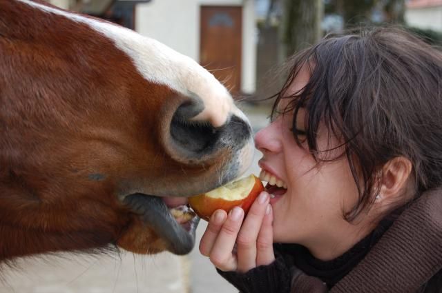 | Bonjour, Hier , je suis allée au écurie voir mon loulou . Je vais vers son box pour lui donner des carottes et j'aperçois une nouvelle proprio ,qui vient d'arrivée au écurie du prince ,sortir son cheval espagnol de 6 ans .Alors , je me dit : je vais aller la voir monter et faire connaissance .Donc je donne les carottes à Or et puis je la rejoint à la carrière .Elle est à penne arrivé dans la carrière , qu'elle le fait prendre le trot ! Ensuite , elle le fait trotté un tour (en lui arrachant la bouche pour le placé ) puis direct galop ! Moi ,ne voulant pas en voir plus ,je vais chercher mon cheval pour le brosser , le soigner , le préparé ,ect... Un quard d'heure plus tard , je retourne à la carrière avec Or sellé et bridé pour le monter et elle était toujours au galop ...eu pardon ...AU GRAND GALOP ! Elle le poussait non-stop..c'était horible à voir ! Alors ne pouvant plus me retenir , je lui dit : -Vous comptez le creuvé votre cheval? Elle me répond : -Pardon ... MOI: -Vous aimeriez q'on vous sorte de votre lit et qu'on vous oblige à courir à fond la caisse pendant 1 quard d'heure ?sans échauffement rien ? elle: -Eu...non je comprend pas le but de la question ? Moi : -Alors , vous vous aimeriez pas mais vous le faites à lui ? ELLE : c'est mon problème pas le votre ! Et puis il a un sale caractère c'est comme sa qu'il faut si prendre avec lui ! quesque vous en pensez? APrès j'ai fait plein de calin à Or ! |