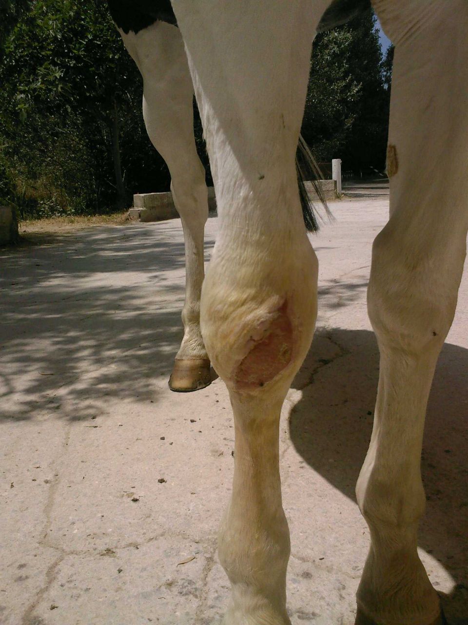 | Dire merci | du cothivet 3 fois par jour, ça chasse les mouches et il faudra 3 mois (j'ai eu ce genre de blessure à 1 pied où bien sur les aggraphes n'avaient pas tenu), long mais on y arrive |