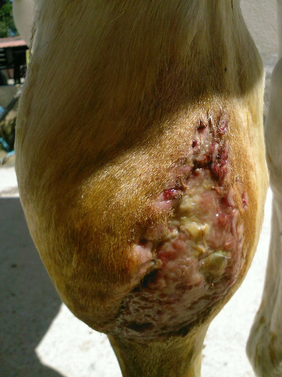 | Dire merci | bonjour je viens de voir ton message je suis inscrite sur le forum depuis peu moi je pense que tu devrais faire appel a un vétérinaire car ta plaie "bourgeonne" il faut arrêté de la mouiller car sa favorise le bourgeonnement il faut on dit "piquer le bourgeon " c'est ton vétérinaire qui te donnera le produit |