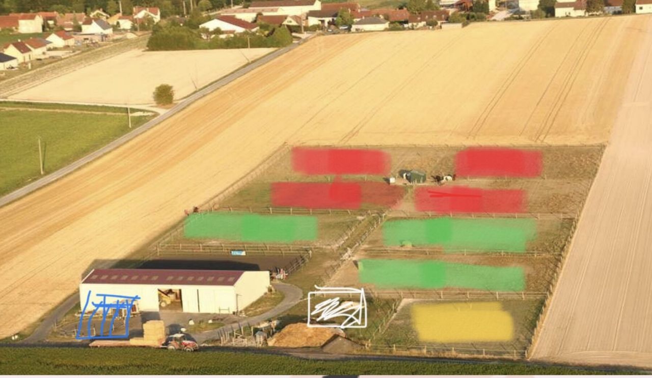 | Dire merci | Coucou !! Je remonte le post Déjà le 8 eme hiver que je passe à l’ecurie , dernière année de remboursement et mon projet d’agrandissement qui avance petit à petit Donc pour le moment je bosse toujours à mi temps dans la commune Et le but c’est d’arrêter une fois le prêt fini pour pouvoir vivre pleinement de l’ecurie Et aussi d’agrandir Donc j’ai réfléchie retournée le problème dans tout les sens Au début je voulais faire un paddock paradise = gros investissement de clôture qu’il faut souvent réparer !! énorme travaux pour stabiliser les sols Et vu l’hiver que l’on a cette année j’me dit des chevaux dehors H/24 c’est juste horrible Et j’ai l’impression que gérer un pp prend énormément de temps si ont veux garder un truc propre Ensuite j’ai étudié le concept ecurie active super aussi y’a moyen de crée dès truc sympa mais vu mon emplacement il y aurais eu de gros travaux pour l’eau l’électricité a ramené plus loin dans mon terrain Donc l’option est de rajouter des box et refaire un hangar de stockage le carré blanc et pouvoir y colé ma fumière Mais le problème c’est les pâtures !! Étant donner que pour le moment j’ai 4 chevaux en box l’hiver qui sont en parc h24 de mai à début novembre dans la zone rouge en parturage tournant J’ai 9 chevaux en box avec sortie pâture troupeau l’été dans la zone verte où je tourne sur 3 parcelle et l’hiver sortie en paddock en mode boue cette année dans la zonne jaune Plus mes deux chevaux L’idée est donc de tout modifier au niveau des stabulations vous avez une photo plus haut et de faire deux ranger de box avec parois coulissantes pour pouvoir curé au télescopique Avec une rangée de 4 box qui donnerais sur un mini paddock / cheval à la place de mon rond de longe Donc j’étudie la façon dont je pourrais faire des ouvertures dans les tôle du hangar pour faire des porte de box qui donne sur des couloirs fermés la nuit et ouvert le matin zone bleu Avez vous des constructeurs de box à me conseiller ou des systèmes sympa je pensais également à voir suivant les prix aussi opter pour des façades avec porte et râtelier libre service à côté je sais pas si je m’explique bien un sytème ou le cheval passe la tête dehors ce qui permet de mettre le Foin à l’extérieur et ne pas avoir de gaspillage Message édité le 30/01/18 à 09:44 |