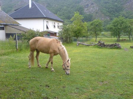 | Dire merci | à la maison, j'ai peu de place : 3000m2 pour 2 chevaux et 1 shet mais ça ne sert que l'hiver et à la mise à l'herbe. J'ai trouvé 2*6000m2 à louer. A la maison, les chevaux sont l'hiver en box et en paddock sablé et drainé et en avril ils vont en pâture progressivement pour ensuite migrer dans les pâtures d'été. Prochainement j'aurai encore moins de pâture car la carrière est en cours de réalisation... |