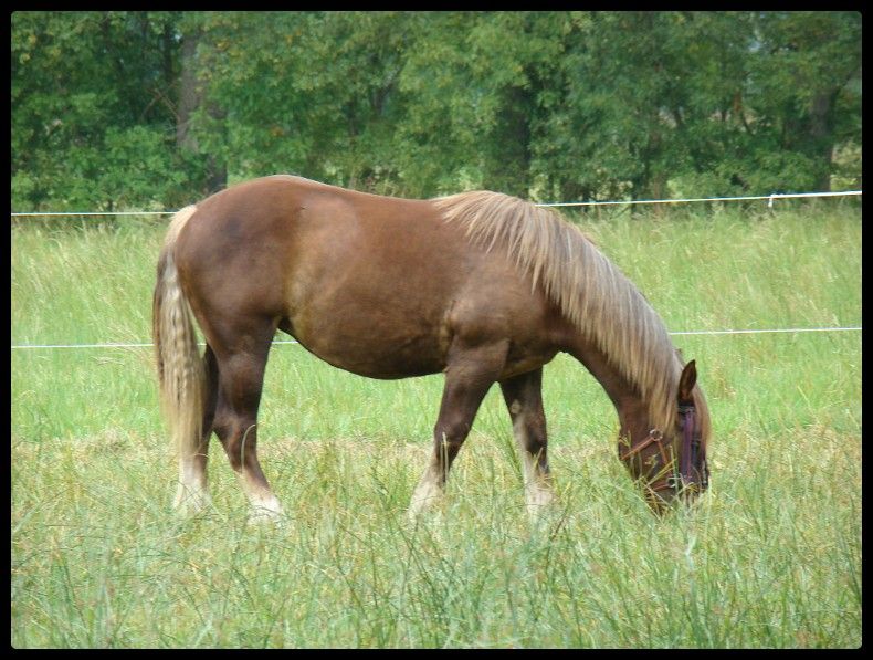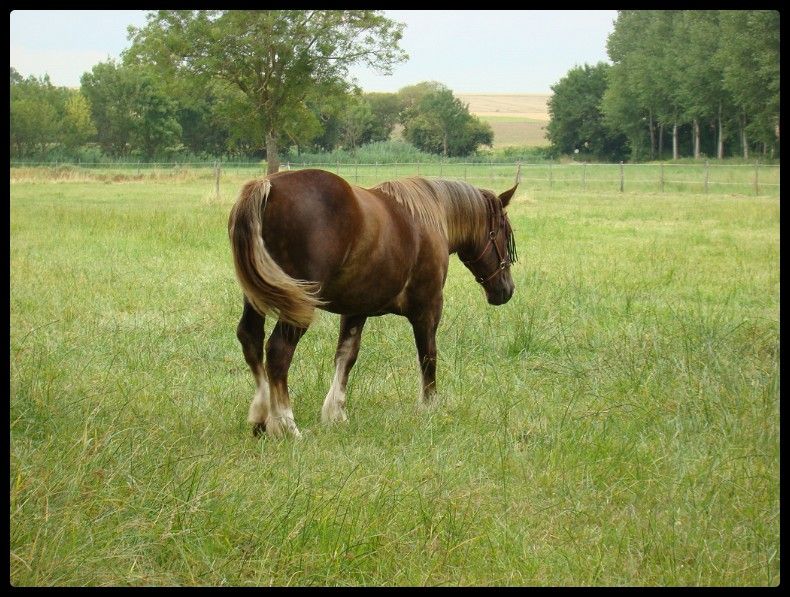 | Dire merci | parce que depuis que j'ai des chevaux je recherchais un alezan brulé et que le breton est un cheval qui me plait niveau caractere... Uria est un gros coup de coeur suite a 4 années de recherche ![]() |