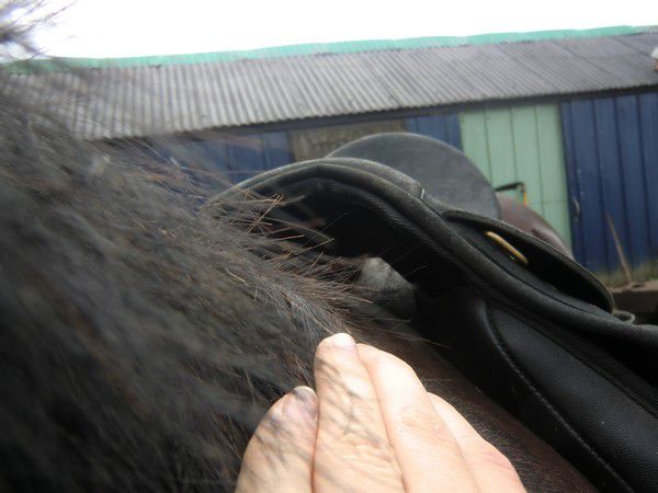 | Dire merci | Au choix, soit ça fait pont, soit ça appuie trop. ![]() Dans mon cas je dirais finalement que ça appuie trop puisque quelques poils blancs sont arrivés. De plus quand je pose la selle, elle repose très bien sur son dos à cet endroit. Avec la nouvelle IW ces traces me semblent plus grandes et avec des contours plus flous. Faut que je refasse un essai, mais bon je ne veux pas marquer la selle vu que je vais devoir la rendre... |