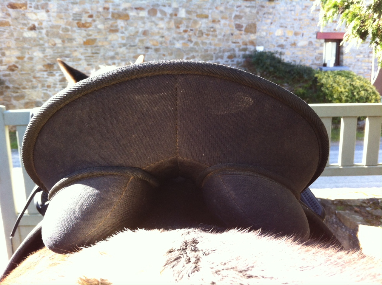 | Dire merci | Bonsoir tout le monde. Je remonte ce post parce que j'ai un wintec 100 à l'essai. Je trouve qu'elle va plutôt bien à ma ponette mais j'ai besoin de vos avis ! La selle se pose naturellement derrière l'épaule et ne dépasse pas la dernière cote. Le siège est bien à l'horizontale. Les matelassures ont l'air de bien reposer partout quand je passe ma main sous la selle. Epaule (je passe trois doigts, voir quatre entre le haut du garrot et la selle, deux de chaque coté) ![]() Matelassures à l'arrière ![]() Selle sanglée ![]() Monté RAS aux trois allures, pas de douleurs. Rien une fois dessanglé non plus. Un seul truc me chagrine un peu. J'ai l'impression que la selle se soulevait légèrement à l'arrière au trot... De quoi cela peut il venir ? Merci ! |