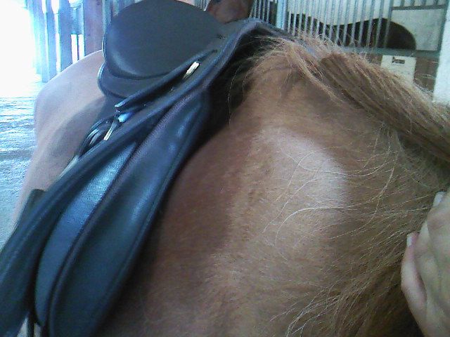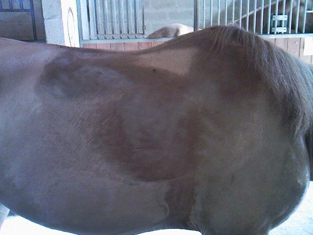 | Dire merci | C'est peut ête pour ça que mes traces sont moins pires avec le tapis et les petits picots cahoutchoutés, la selle est un peu mieux calée... C'est clair que son dos c'est tout plat voir un peu bossu où il y a des points de pression, et que je m'y prends à plusieurs fois avant de décider jusqu'où je recule ma selle... Je vais retourner voir tes photos voir comment tu recules ta selle. |