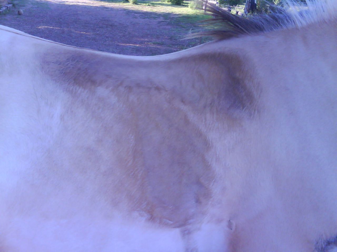 on voit toujours pas si la selle a la bonne ouverture de garrot sur tes photos c'est des traces sèches au milieu des matelassures? |