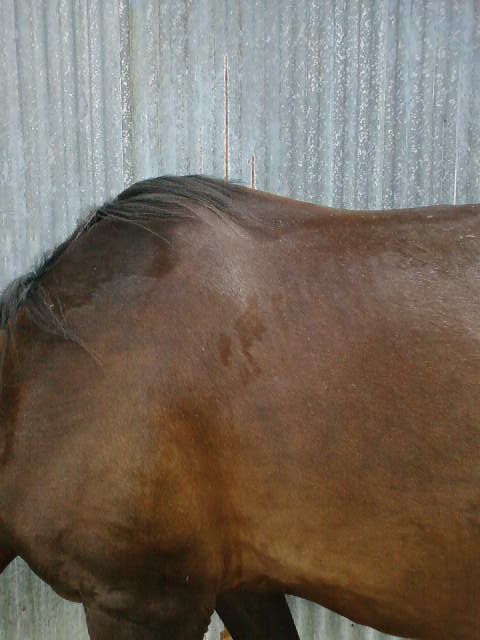 | c'est pas tant sur les épaules que ça, ça va. tu sangles sur quels sanglons? pour équilibrer ta selle sur un cheval qui a du bide le mieux c'est de sangler sur le sanglon du milieu et sur celui de l'arrière (vers le troussequin) au lieu de sangler sur le 1er et le 3ème comme on le fait habituellement ![]() |
