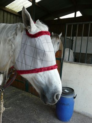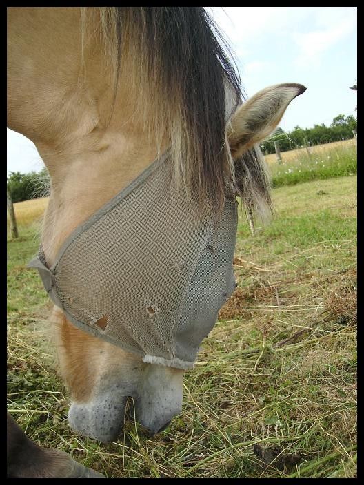 Je lorgne sur un autre de Loesdau pour quand celui de Décath sera fichu. C'est un flymask intégral qui descent jusqu'aux naseaux. Les chevaux de ma pension en ont: super et solide. Par contre il y a des oreilles (qu'on peut sûrement découper).