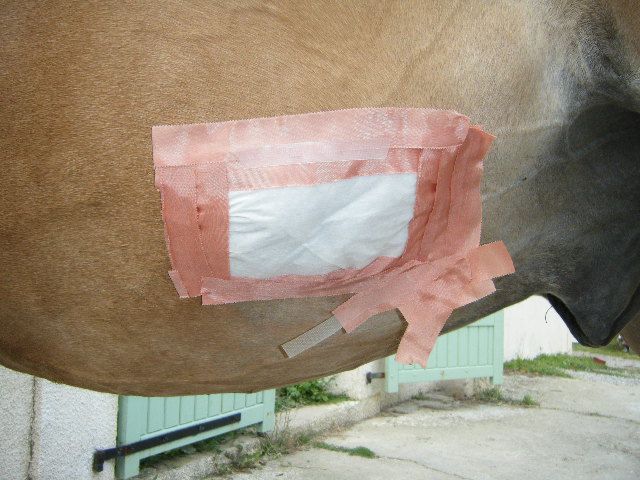 DéconnectéDire merci | J'explique : Mon cheval avait un sarcoide sous le ventre devant le fourreau; Il se l'ait arraché . 3 piqures d'antibiotique, cela faisait un trou comme une balle de ping pong, je desinfecte tous les jours à la bétadine ou au spray violet, mais avec les mouches ça ne cicatrise pas trop bien; impossible de cacher la plair vu où elle se trouve. En plus comme monsieur n'aime pas les sprays c'est tout un cirque je ne peux désinfecter correctement. Le postérieur vole au bout de quelques secondes et je n'ai personne pour m'aidait; Alors que mettre dessus, vaseline, spray alu, cetavlon ? |