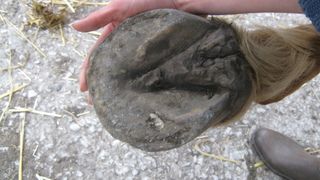 | Dire merci | dommage les photos ne sont pas bien prises.... Les pieds sont longs, les barres très présentes, les talons avancés....un peu d'évasement mais pas cata (côté droit des deux ant) Les post faudrait qu'ils soient à plat...comme ça on ne peut rien voir. L'angle de pousse des antérieur semble avoir un autre angle que la paroi mais comme il est caché par les poils du bourrelet périoplique : pareil on ne peut pas certifier. Un peu de pourriture de fourchette aussi. ![]() |