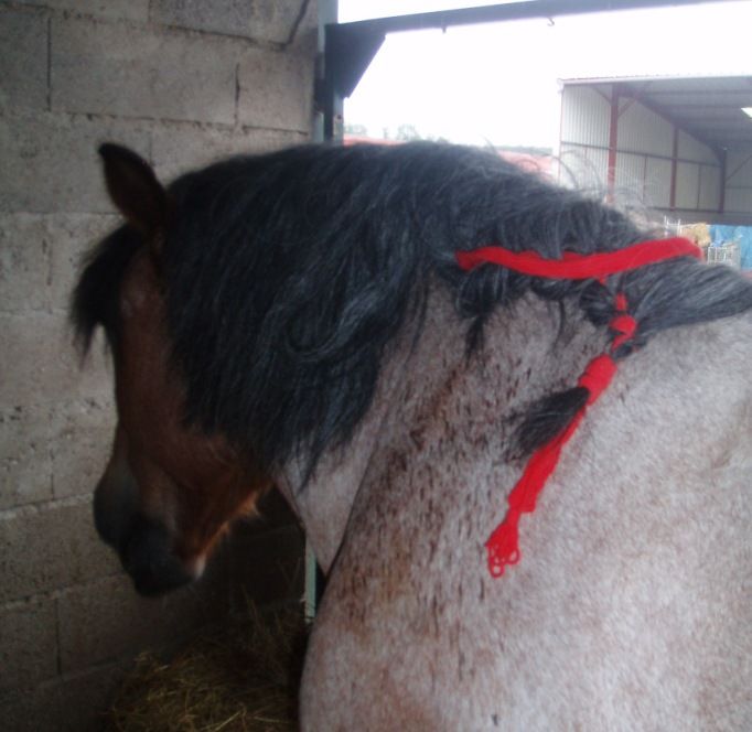 DéconnectéDire merci | bonjours, j'ai deja enmener ma jument en concoure , donc j'ai appris a faire les tresse , elle sont très simple , si vous voulez je peu vous postée une video ?!, mais il faut que je la fasse ! nous avons eu un probleme de souris , et elle on mangée tout le rafias , du coup j'aimerais en retrouver mais je ne sais plus la longueur qu'il faut , quelqun saurait-il quelle longeur il faut svp? je vai la remener cette année , donc j'en aurrai besoin au plus vite :/ j'ai vue les photo des nattes présenté et au concoure , il ne faut pas les tresser comme cela , normalmenent les tresses sont dessus l'encolure , je vai vous maitre une photo |