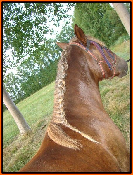 | Dire merci | Pour la longueur, je suis d'accord, j'aimerais la ramener à une largeur de main, mais ma chère mère lui préfère les cheveux long...j'ai beau lui expliquer que Tobal n'est pas un pure race espagnol à la crinière tombant par terre, rien n'y fait...un jour peut-être... Donc il faut que je réussisse à rapprocher beaucoup plus la tresse de l'encolure...entrainement, entrainement Faisons-nous part de nos progrès |