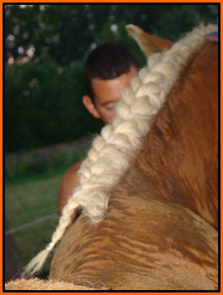 | Dire merci | je presente en Aout mes 2 traits une bretonne et une comtoise et j'ai une tresse d'etalon a faire je ne sais pas faire avez vous des videos ? fotos pour m'aider ? la tresse de queue ca va a peu pres |