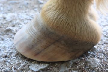| Dire merci | Le maréchal ne voulait d'abord pas du tout toucher aux fourchettes des antérieurs. Contrairement à ce que tu sembles voir sur les photos, il n'y avait pas de partie "morte", ok la couleur prête à confusion, mais tout était sain. Seulement, comme la fourchette dépassait légèrement de la paroie, je lui ai demandé de tailler légèrement pour laisser une marge de "l'épaisseur d'une carte de credit". L'hématome en fourchette est exceptionnel, c'est la première fois que mon cheval en avait un. Il avait du marcher sur un truc ? Par contre, les hématomes en pince des postérieurs, c'est effectivement récurrent. La théorie de mon maréchal c'est que comme mon cheval engage beaucoup (il forge au trot allongé et au galop) et que la pince des antérieur est fuyante, les postérieurs doivent cogner contre les antérieur, peut-être au niveau de la sole calleuse ? Parce qu'aux antérieurs, il n'a pas d'hématomes ni en pince, ni en talon et il ne blesse pas non plus aux glômes... Peut-être qu'avec ce récent parage (le meilleur qu'on ait pu réaliser jusque là !) qui corrige vraiment bien la pince fuyante, les postérieurs ne cogneront plus sur les antérieurs ? Il faudra voir au prochain parage ! Pour le roll peu prononcé, je pense que c'est parce qu'il avait beaucoup amincit la paroie. Mais je ne peux que supposer, car je n'ai pas vraiment fait attention sur le coup. J'ai vu par la suite qu'il n'avait pas fait de roll du tout aux postérieurs, peut-être qu'il croit lui aussi qu'il n'y a pas de "déroulement des postérieurs" ??? Il faudra que je lui demande la prochaine fois. Ce week-end, je pense que je vais passer un coup de râpe sur tout le tour du sabot. J'essaierai de refaire des photos ! |