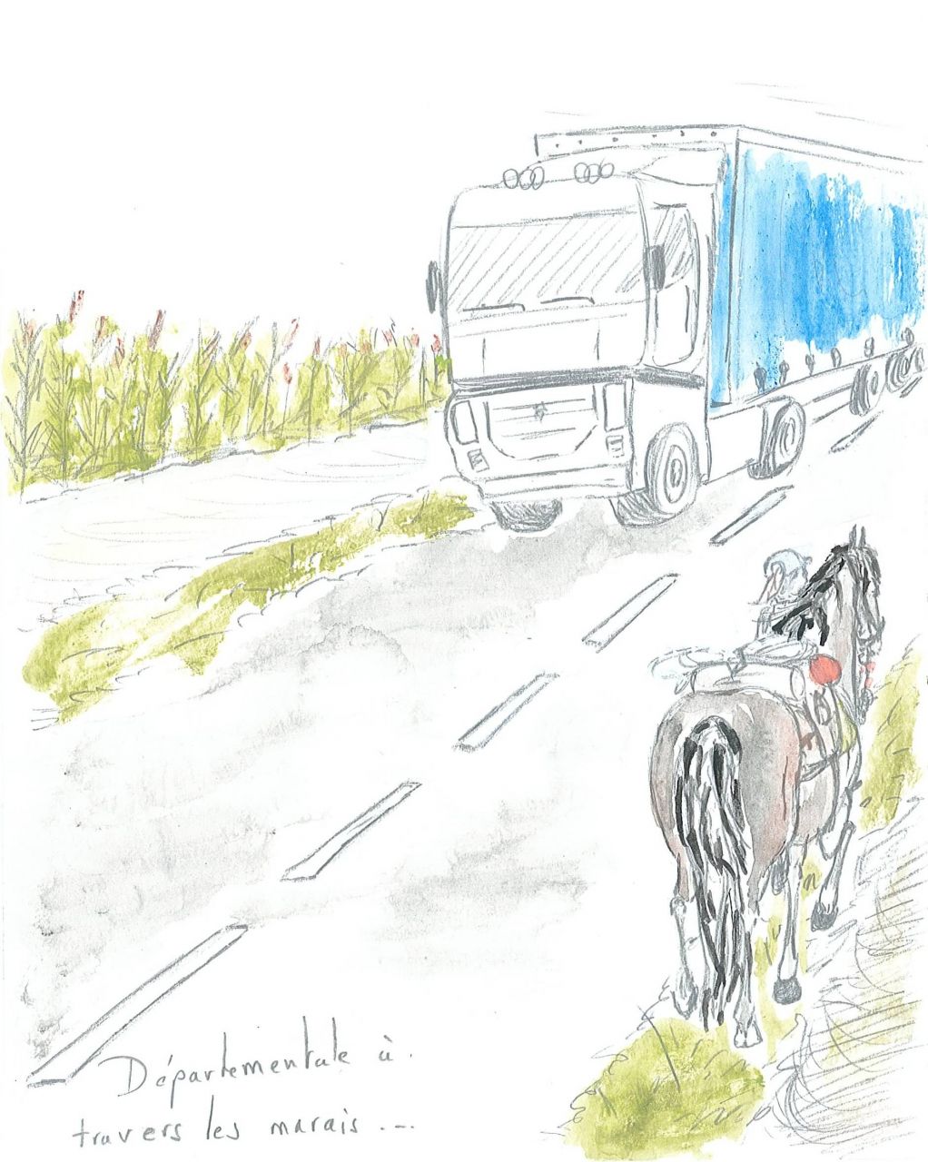 | Dire merci | Bonjour à tous! cela fait un moment que je n'étais pas venue sur le forum pour cause de déménagement. j'ai donc quitté Saint Nazaire pour la Gironde et, comme j'en avais déjà parlé un peu sur le forum, je me suis décidée à descendre Lutin...à cheval soit environ 250km de rando tout les deux, rien que tout les deux! Pendant ce petit périple, j'ai rédigé chaque soir un petit "carnet de voyage" que je voulais vous retranscrire ici. Mon apn m'ayant abandonné corps et bien en cours de route, je n'ai que quelques photos prises de mon portable alors j'ai décidé de tenter quelques croquis que je vais scanner pour illustrer un minimum le tout. je vous propose de vous donner chaque jour une page de mon carnet de voyage, histoire de vous faire partir en vacances au même rythme que moi! |