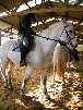 | Dire merci | Killy, exactement comme sur un demi-cercle. Mais pense à ne pas demander un cercle entier à un cheval qui n'en a pas l'habitude, toujours commencer par quelques pas, puis peu à peu au fil des séances on allonge l'exercice. Pour les aides, me concernant (j'suis plutôt minimaliste, mais ça marche ^^): je garde exactement les mêmes aides des mains que pour le cercle (attention, tu dois bien être en train de tourner avec ta renne extérieur qui dirige les épaules et cheval détendu sur la renne intérieur, qui oriente l'incurvation, sinon tu va te retrouver avec un asticot tout tordu entre les doigts). Je recule légèrement ma jambe intérieure (là encore, l'action est à doser selon l'expérience du cheval. Un jeune aura besoin d'une action plus franche, un cheval de dressage se contentera d'un action très discrète). Je ramène ma jambe extérieure à la sangle, mais n'agit pas avec, elle est juste à sa place, sinon le cheval va rentrer ses épaules. Mon bassin garde la même orientation, dans l'axe du cercle. Je sais qu'avec ma jument c'est hyper important, si jamais mon bassin dévie, elle quitera le cercle, alors que s'il reste bien axé, elle garde le cercle. Penser à avoir une action intermitente avec la jambe intérieur, ne pas la "figer" contre le cheval. Voilà Sinon y'a un autre exercice du même type que j'aime bien (et que je trouver super beau à regarder), c'est demi-volte en hanche en dedans, et retour à la piste en cession à la jambe. Un peu plus technique, mais sympa. Message édité le 20/07/10 à 12:25 |