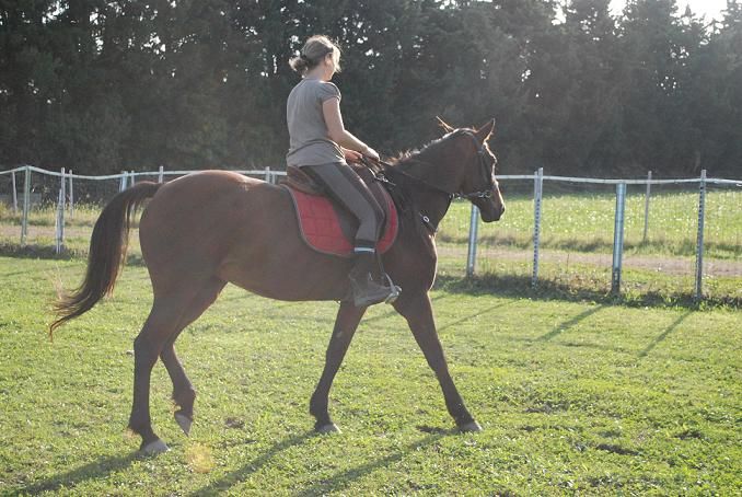 | Dire merci | Nathou : Sinon comme j'ai marqué à Katia, ma louloute a été infernale aujourd'hui!!! J'ai eu droit a des petits cabrés bien sympathique!!!! Mais bon je ne l'ai pas laissé faire et j'ai insisté. J'ai quand même obtenu d'elle qu'elle me fasse des petits trots au lieu de ces légendaires trots vitesse 7!!!! Je suis assez satisfaite malgrès la bagarre!!! Elle galope également de mieux en mieux dans le rond de longe. Pourtant c'est pas le peu que je l'a travaille qui l'amèliore!!! Je pense qu'elle prend beaucoup exemple sur les deux autres qui galopent beaucoup en liberté, le trot c'est pas leur truc!!!! Tant mieux pour moi!!!! Petites photos d'aujourd'hui, regardez pas ma tête j'étais un peu énervé!!!! ![]() [url=https://www.1cheval.com/membre/services/photos/images/72082.jpg] ![]() [/url] |