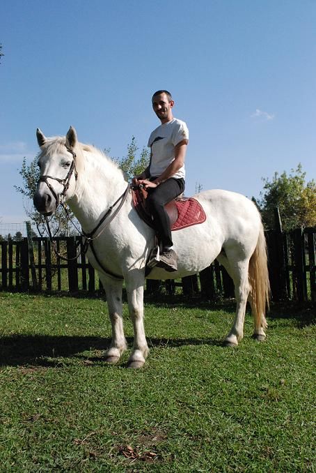 | Dire merci | Nathou : Non depuis le dernier exploit, mon homme n'a pas remonté Sultan!!! Il n'ai pas rassuré à l'idée de le faire, donc je n'insiste pas!!!! Par contre aujourd'hui, il a monté une bonne heure dans le rond de longe ma camargue, je lui ai fais travailler son trot assis, il s'est bien démerdé, il a une bonne assiette je trouve!!! Mais le trot enlevé toujours pas!!!! ![]() Petite photo du jour : [url=https://www.1cheval.com/membre/services/photos/images/72084.jpg] ![]() [/url] Il a un peu plus le sourire là!!!! Hihihihih La selle lui va pas trop mal. Mais bon elle est tellement grosse qu'on l'a voit même plus!!! Lol |
