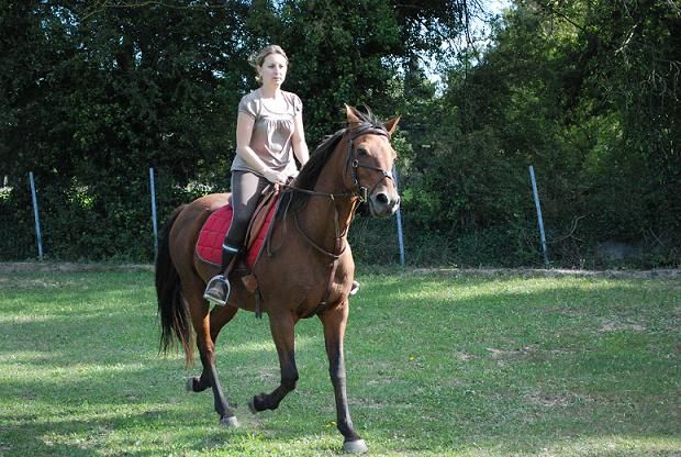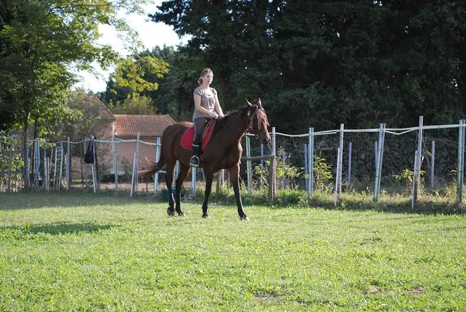 | Dire merci | 2ème cours fait hier soir !!! Sur une petite juju super sympa et un peu plus réactive que le premier Je bosse ce weekend donc on est allé a celui du mardi soir du coup ! On était 4 ! cette fois, on a beaucoup bossé au trot, équilibre et direction (slalom, demi-tour). Et un peu de galop (comme l'autre fois, 2 fois chacun notre tour) mais là j'ai plus de mal , je suis pas encore rassuré a cette allure et du coup j'ai du mal a me relacher et ça s'en ressent (j'ai besoin d'avoir le pommeau de la selle a porté de main et j'ai du mal pour la direction aussi)!!!Mais bon, je suis bien contente qu'au bout de 2 cours, je sois aussi a l'aise au trot enlevé et surtout, j'ai bien moins appréhendé que pour le premier cours |