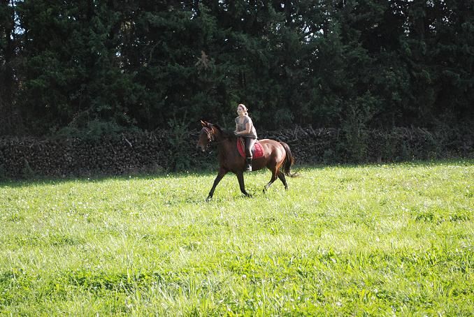 | Dire merci | Nathou : Super pour ton cour, tu vois que tu es plus à l'aise de jour en jour!!!! Le galop ça va venir petit a petit!!! Essaye de regarder là ou tu veux te diriger et laisse toi aller.... Moi j'avoue que c'est l'allure que je préfère!!!! Les pony games m'ont complètement convertis aux joies du galop et de sa vitesse!!!! Pour mon homme, je ne comprend pas ce qui cloche pour le trot. Mais je pense que le problème c'est qu'il a commencé a apprendre sur 1- ma camargue qui est une grosse faignante et qui tient pas le trot sans s'arrêter au bout de 30sec 2- sur Sultan avec qui cela ne passe pas du tout et sur lequel il appréhende de monter et 3- Sur la trotteuse qui a un trot super dure a suivre même pour moi!!!! Conclusion : Il n'est pas aidé par mes loulous pour apprendre l'equitation!!!!! MDR.... |