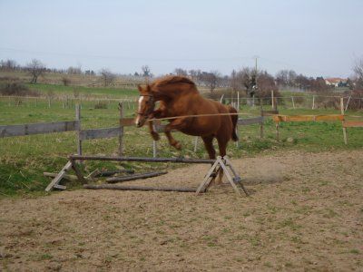 | Dire merci | oui car nous on se fait du mal en voyant tes photos, le mien c'est tout pareil, je ne saute plus car je lui en fait la promesse quand je l'ai racheté raide boiteux. le dressage il est bon mais ça le gonfle ! par contre partir pleins cul c'est le pied. je le fait aussi super rarement car je passe ma vie à essayer de l'avoir dans le calme, et puis il faut aussi le terrain qui va bien. en fait quand on le fait, c'est toujours plus ou moins sur les mêmes terrains, je me mets juste en suspention et je m'agrippe à sa crinière pratiquement derrière les oreilles. et là il a un moment de panique genre "oh P*** ça y est on est parti !" s'en suit un démarrage de malade, à chaque fois j'en ai les yeux qui pleure à cause de la vitesse, je suis morte de rire, j'adore ! |